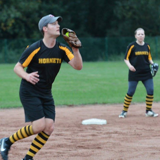 Many games this season have been high scoring, & despite a great tag by the D's 3rd baseman James Hand, the Hornets jumped out to an early 2-0 lead with Cathy Ford (née Allard) and Trevor Morley crossing home plate. Then Homerun Hornets' pitcher Alan Davies took over, shutting out the D's in innings 2, 3 and 4 - his aim as accurate as Clint Eastwood in a wild west saloon. He was backed up by a fine catch by Louis Sanford and a fantastic double play from Chris Borah.